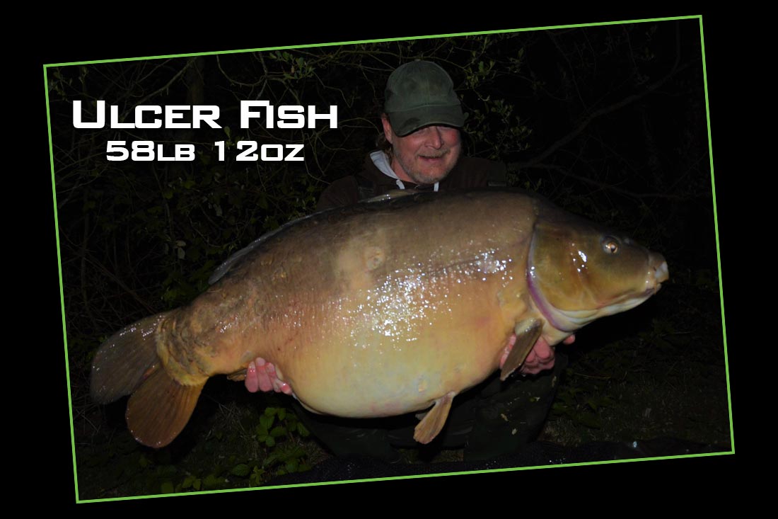 Up on the scales she went 58lb 12oz, a new PB and to say I was elated would be an understatement. With the pictures done and the Ulcer Fish safely returned to her home, I sat back and tried to take it in. I did not have much time to do that though as a short while later Rob was playing his first Welly carp. After a hairy battle in The Snags a mid-30lb common was sulking in the net. What a result, and this was our first night!