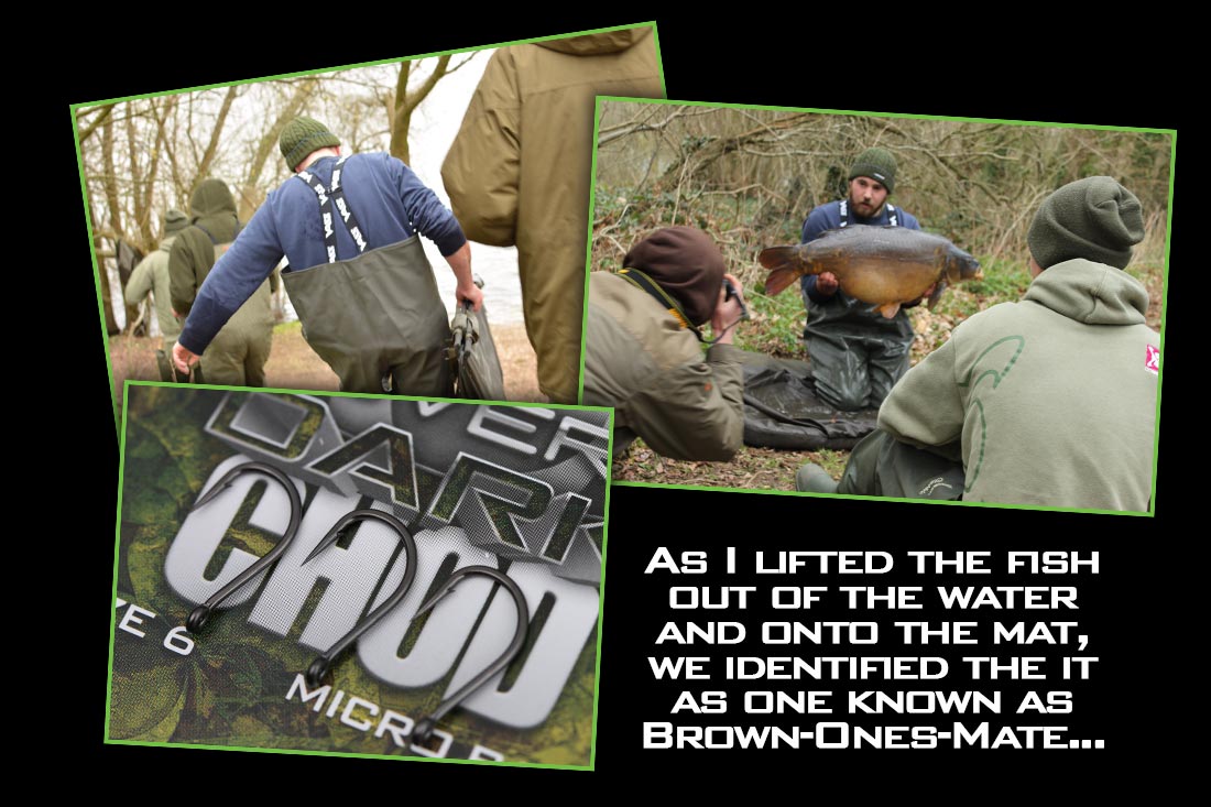 Whilst the fish was safely in the folds of the net, my friend Ash made his way round the lake to assist me with the weighing. As I lifted the fish out of the water and onto the mat, we identified the it as one known as Brown-Ones-Mate. The carp looked massive and had not been out for a few months, and the weight was a massive shock to us, and I was absolutely over the moon. It felt great to catch one of my target fish from the venue and to make things even better it weighed 40lb 2oz! A new PB at the time and my first UK 40lb’er.