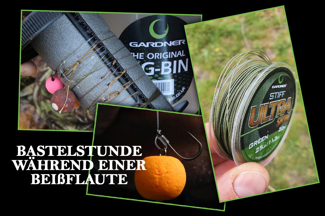 Diese Frage wird wohl fast bei jeder Session mit Freunden und Bekannten aufgeworfen und diskutiert. Und wer kennt die richtige Antwort? Niemand, denn jede Situation kann andere Auswirkungen haben. Sogar am selben Gewässer, an der gleichen Angelstelle und identischer Futtertaktik, kann es sein, dass ich meine Taktik in der nächsten Session ändere oder sogar ändern muss. Wieso? Auch wenn ich erfolgreich war, habe ich sicherlich an einigen Fischen vorbeigeangelt. Und diese möchte ich auch fangen. Die Gründe können sehr simpel sein, wie zum Beispiel ein kürzeres Maul oder ein dickerer Bauch. Manch ein Fisch bewegt sich bei der Futtersuche aktiv hin und her oder steht kopfüber und bewegt sich kaum. Der nächste verfällt in Hektik und hat Angst, dass der Nachbar zu viel abbekommt. Ich bin auch davon überzeugt, dass Vorfachlänge und die Beschaffenheit des Links (weich, hart, Farbe) sehr viel damit zu tun haben, ob ich einen Fisch haken kann. Es ist wohl kein Geheimnis, dass es das „Alleskönner-Rig“ nur in der Phantasie gibt und die Erfahrungen zeigen, dass es sehr viele gute Rigs gibt. Auch ich habe einen Favorit, aber wenn ich beide Ruten auf einem Futterplatz fische, dann bekommt eine Montage irgendetwas Besonderes von mir verpasst. Wie schon erwähnt, kann es die Rig-Länge sein, oder ich wechsle einfach das Hooklink von weich auf beschichtet oder Mono. Nur der Haken ist in den seltensten Fällen ein anderer. Ich bin nach sehr vielen Jahren des Testens beim Gardner Mugga Haken (zumindest für Bodenköder) hängen geblieben. Er hat quasi auch mich gefangen. Ich kenne keinen anderen Haken, der aus der Fabrik bzw. Tüte heraus so extrem spitz ist und diese auch lange behält. Früher habe ich nach jedem Fisch den Haken gewechselt, das war nicht nur nervig, sondern auch kostspielig. Da ich nicht nachschleifen muss, bleibt das Material somit auch stabiler und rostet nicht. Außerdem hat mich die Form so überzeugt, dass ich derzeit keine Experimente mehr machen muss. Beim Binden der Haken gibt es trotzdem genügend Spielraum für Variationen.