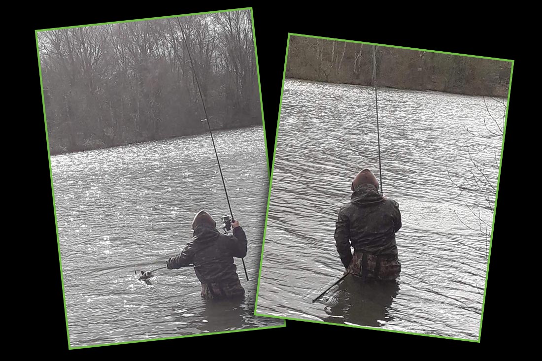 The following day I returned fully focused, with total tunnel vision, and the first thing I did upon arrival with my barrow in the Lawns swim was check that net. Well the twig hadn’t moved, so I was confident those fish hadn’t been disturbed and with the conditions the same I set about setting up whilst being battered by storm Gareth rolling down the lake at me. After a few dodgy casts in the cross wind, I managed to get my rigs in where I wanted them and even the one in the alcove along the tree line went in without drama.