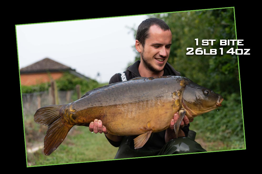 I captured a Tench right on first light and this fish actually wiped out one of my other rods too. As I stood at the top of the swim wrapping the rods back up, the one remaining rod left in the water went into absolute meltdown. I ran back down the steps and lifted into it and knew instantly I was attached to my first Roach Pit carp. The knees started to tremble and after a pretty tense fight, I was soon slipping the net under what was probably my hardest earnt carp to date! It was a plain one by Roach pit standards, but a lovely one at that!