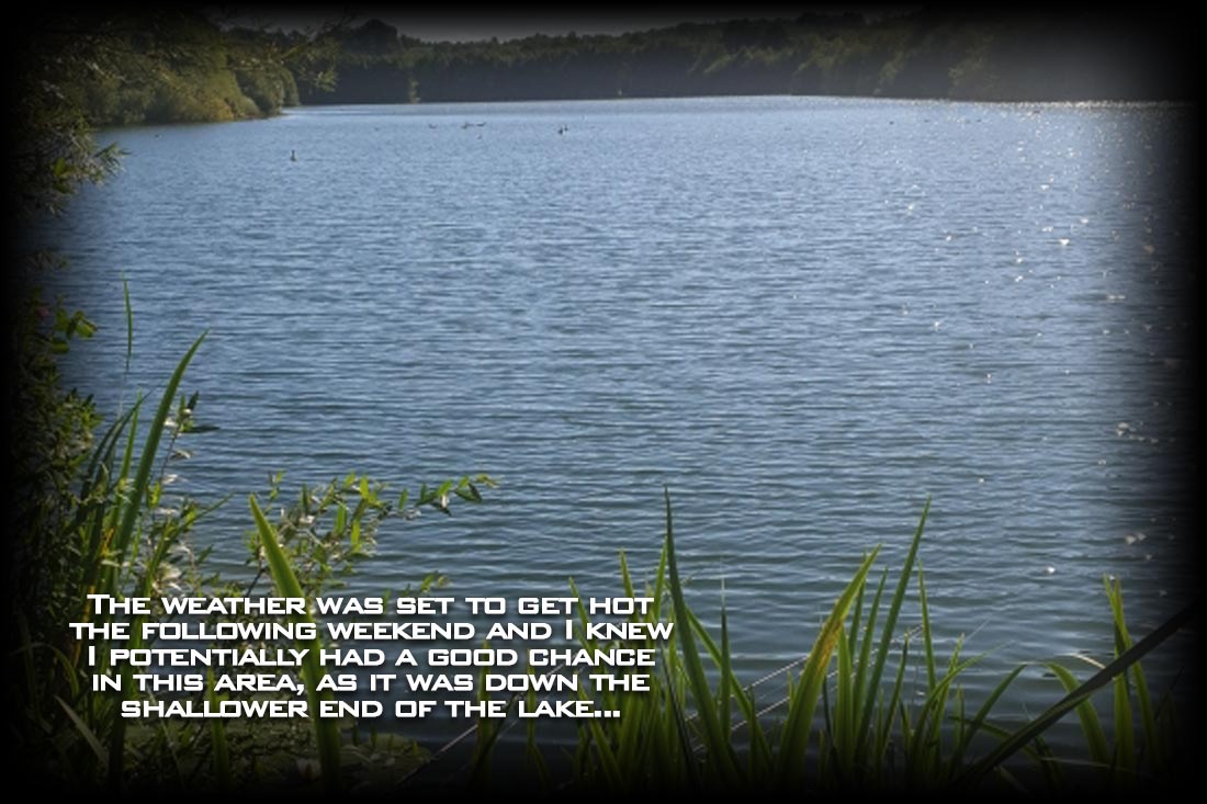 So now it was time for the back-up plan… There was another swim, at the complete opposite end of the lake, which I had also been baiting. Not nearly as much food, as it was along a tree line, but I was still making sure this spot was seeing bait twice a week at the very minimum. The weather was set to get hot the following weekend and I knew I potentially had a good chance in this area, as it was down the shallower end of the lake.