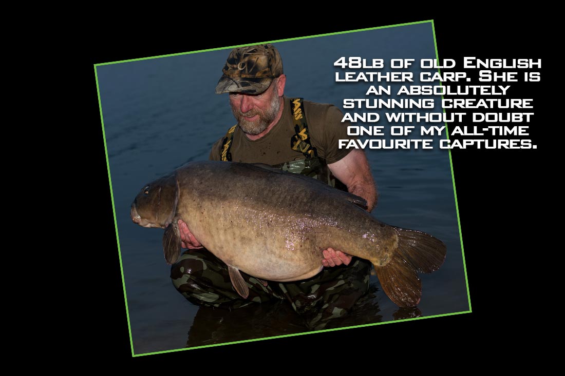 48lb of old English leather carp. She is an absolutely stunning creature and without doubt one of my all-time favourite captures.