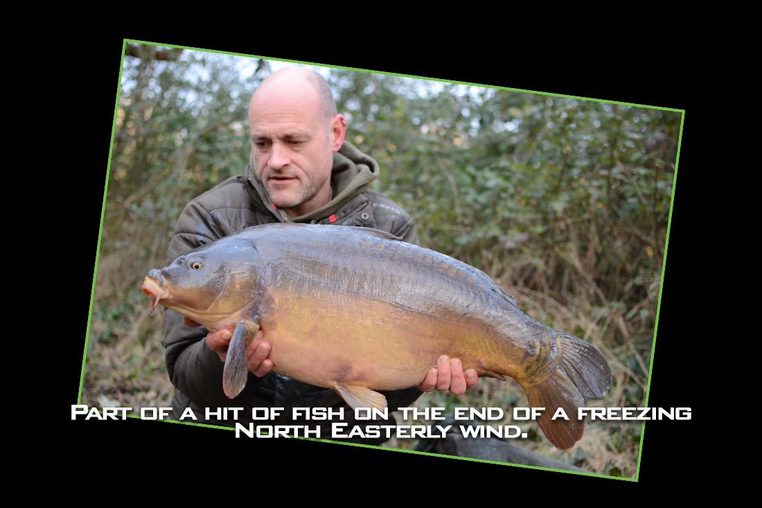 Once you have found their winter haunts you may be able to settle down a bit but until then, I’m afraid, it’s the mobile approach all the way. The fish will not be as keen to travel as much as in the warmer times and will often inhabit very small areas of the lake. I need to be fishing where they are to be in with a shout and finding them can be problematic. If I can’t see any signs it will be necessary to move around until something happens, either a bite, liners or, maybe, just a sighting or two. With groundsheets, overwraps and all the other cold weather paraphernalia to pack up and carry it is all too easy to sit there and wait. It takes a certain determination to be prepared to up sticks in the cold, but do it you must, at least until you have located their winter areas.
