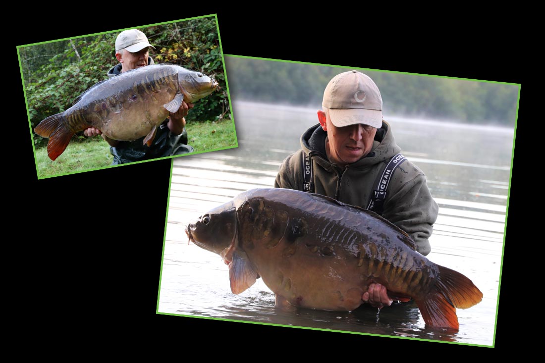 Coffee consumed and pondering with having another. A single beep again on my left-hand rod and a couple of turns on the spool and I lifted in to my second carp of the trip. This time from the off, clearly a much better carp. No hard lunges or powerful runs, just using its weight to try and plod away from me. It was a straightforward battle, which is often not the case. When they come along, they are most welcome. Across the net cord it went and although a repeat capture, I had absolutely no issues in the slightest catching this very special and sought after scaley in the pond. Yes, almost 5 years to the day I had nailed ‘The Pretty Sutton’ again but this time over the next magical milestone at 43lb 8oz. I knew going back I would inevitably have some repeats, but when they look this majestic I have absolutely no issues at all. Catching this one in the daylight though and an opportunity for some daytime pictures did make it more special. Thank you to the lads who assisted me on the bank and with the camera.