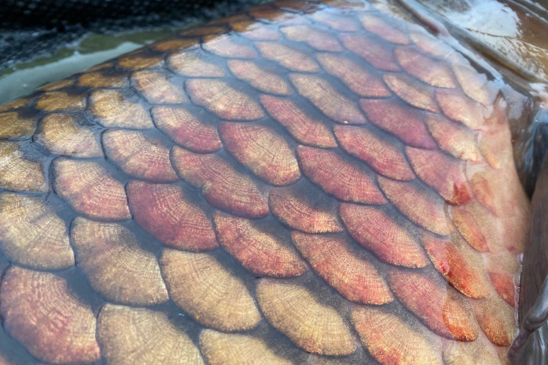 Nothing happened during the night, so at first light I decided to recharge the hook baits and try a specific old, favoured spot but deliberately avoided the clear silt area and dropped them shorter on to thicker onion weed. With two rods in that zone, I pulled one in much closer and off at almost 90 degrees to a spot a swan was continuously working hard to get at whatever was on the lakebed. This swan was hammering this area non-stop the previous day. By 6am, it was the final roll of the dice. Absolutely nuts, as by 8am I had landed three pristine, dark chestnut with patches of winter red common carp. The first one rattled off and was secured in a sling while I got my camera together, then the second rod rattled off. Two carp now secure, the third rod where the swan was so fixated on then rattled off. I literally then had three commons that I had to photo one after the other. Absolutely crazy. It was then a super quick pack down as it was time to watch my youngest play grassroots football.