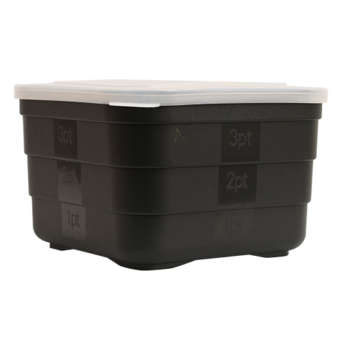 Each of the three different sized tubs features a volume level indicator moulded on the side in 1 pint increments.