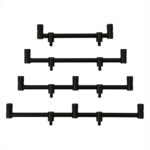 The bars are only available as a pair. The front bar extends from 17.8cm (7″) to approx. 28cm (11″) and the rear bar extends from 15.2cm (6″) to approx. 23cm (9″) allowing for a varied approach to rod spacing and angle. The lock tight thumbscrews ensure a solid and secure set up once adjusted. Ideal for any angling situation.