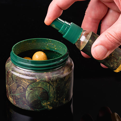 A kit to flavour, glug, boost and store baits and PVA bags. Containing our 1.2ltr Camo Tub, one of each of the Camo Pots, Camo Atomizers and Camo Injectors.