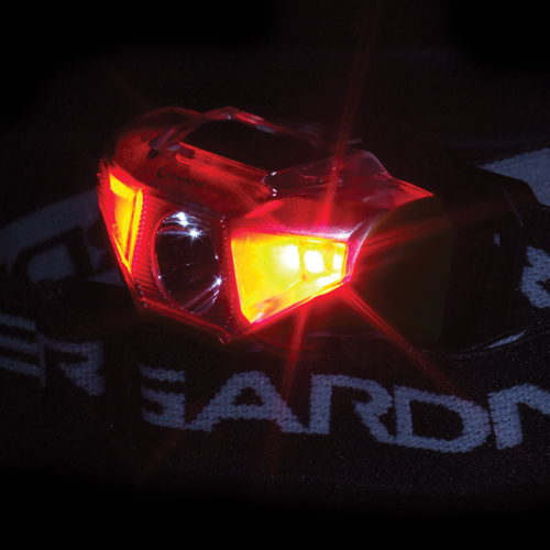 • Clicking the on/off button a third time swaps the light output to a wide beam, created by twin red LEDs. This final mode offers excellent lighting without affecting your night vision.
