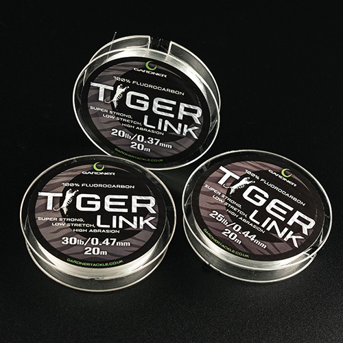 Tiger Link is a true 100% fluorocarbon Hook Link that is virtually invisible in water. It is a ‘multi-directional polymer’ providing exceptional abrasion resistance and knot strength. Tiger Link is UV resistant, making it hard wearing, long lasting and good value for money.
